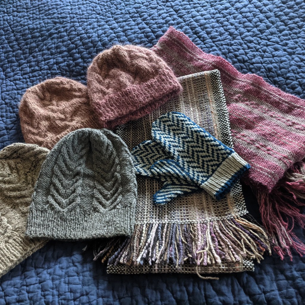 Gallery Yarn, scarves, hats, mitts, rugs and more! Just a small sample of the many items produced by Klamath Basin Wool Works. Off the Grid Mitts